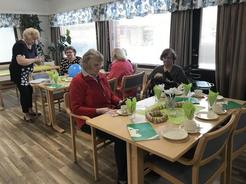 14.5.Äitienpäivä.Kukkia ,kakkua kahvinkera.Miesväen toimesta