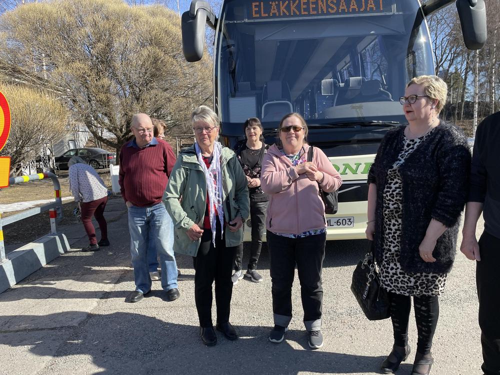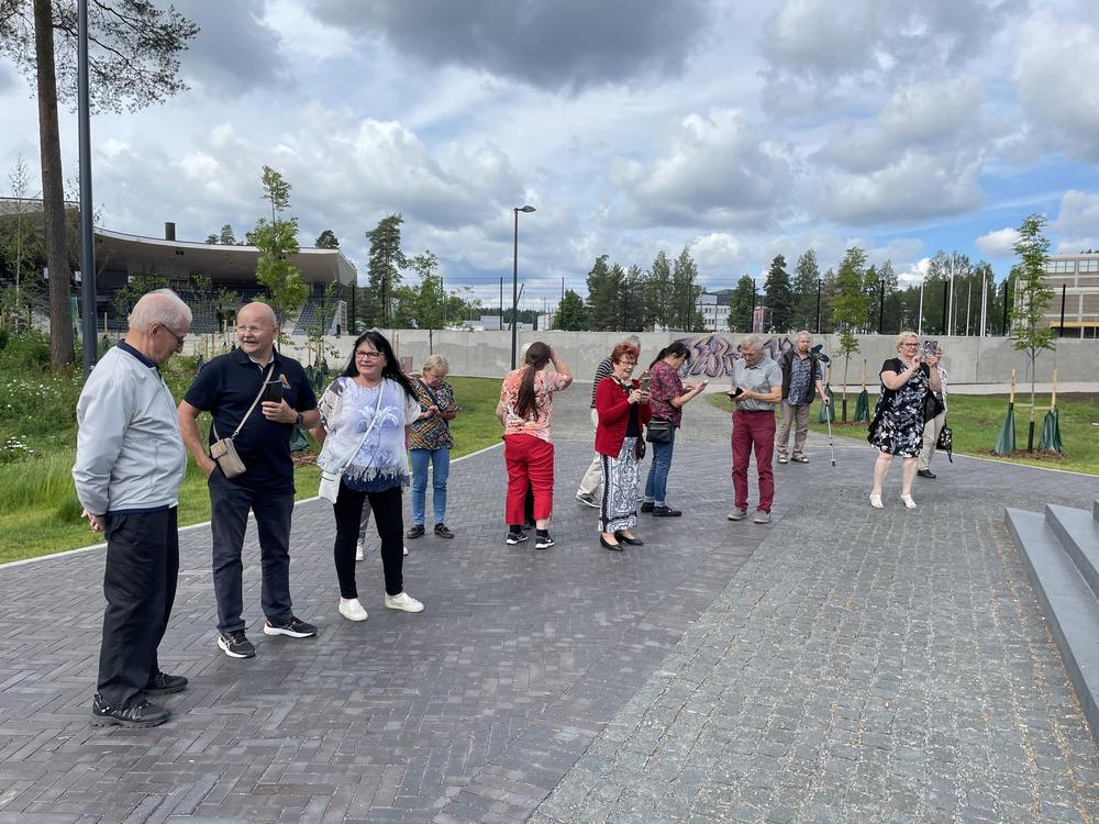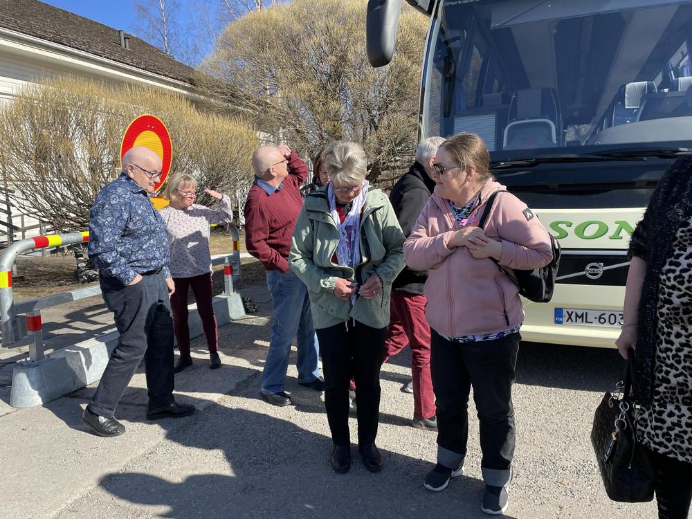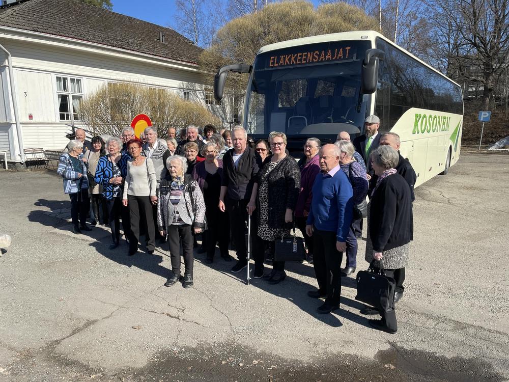 6.7.2023 Umpimähkämatka. Kososen bussiin mentiin klo 7.00 , eikä tietoo mihin mennään, mutta kyydissä oltiin. Jyväskyläänhän sitä mentii ja sieltä Ränssin Kievariin teatteriin, kävimme matkan varrelle Jyväskylän keskustassa Toivolan vanhassa jo 1800 luvun Käsityöläis- pihapiirissä. Martti Nykäsen muistomerkillä Höyhen ja auto lähti kohti Ränssin Kievaria siellä mentiin "junalla Rovaniemen markkinoille" laulunäytelmä, se oli kyllä hauska esitys jossa hyvät laulaja esim. Teuvo Oinas, Jaska Mäkynen, Juha Laitila ja muutkin näyttelijät. Esityksen jälkeen komia pitopöytä odotti ruokailijoita. Reissu läheni loppuaan, tullessa käytiin vielä Viherlandiassa. Hauska matka Kiitos Hilkka, Mika kuljettaja ja Matka-Kosonen.