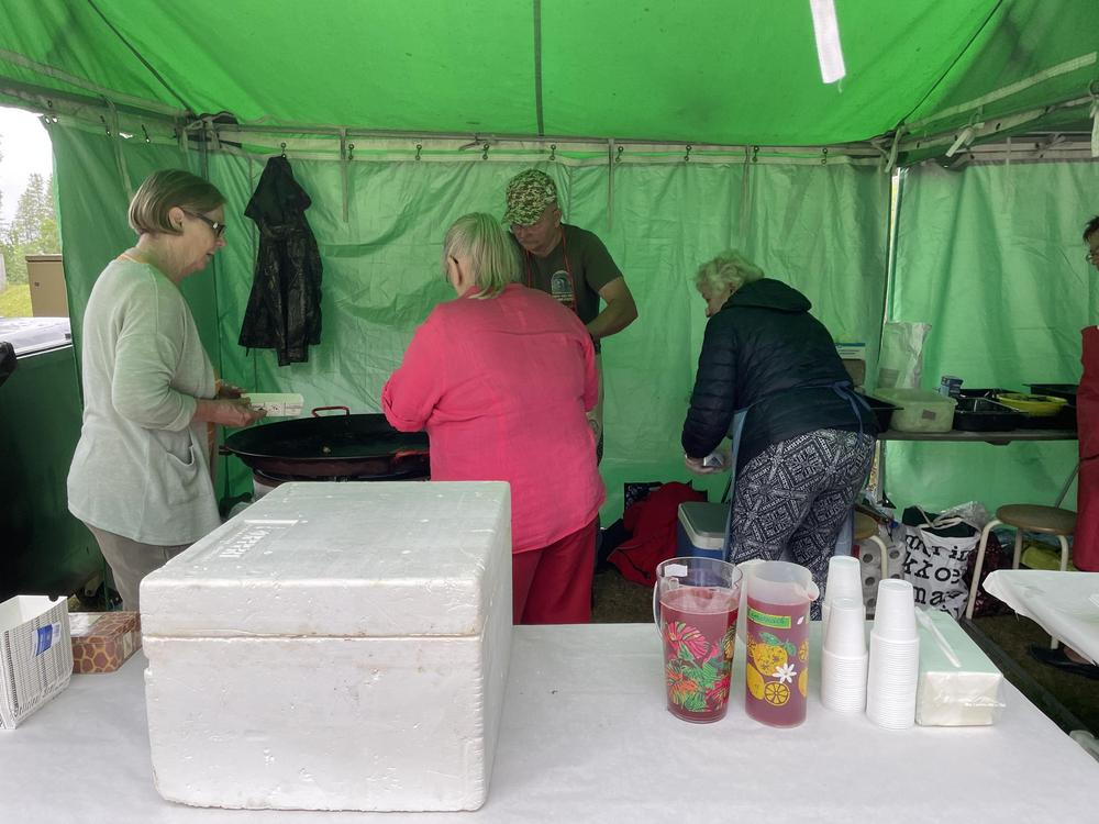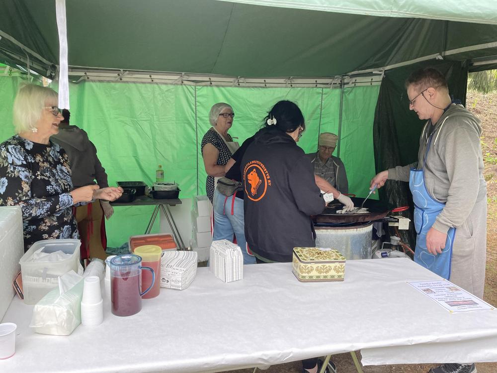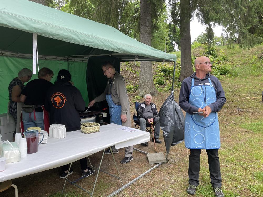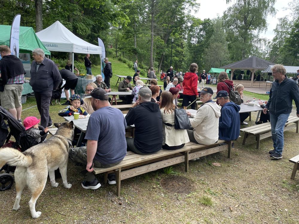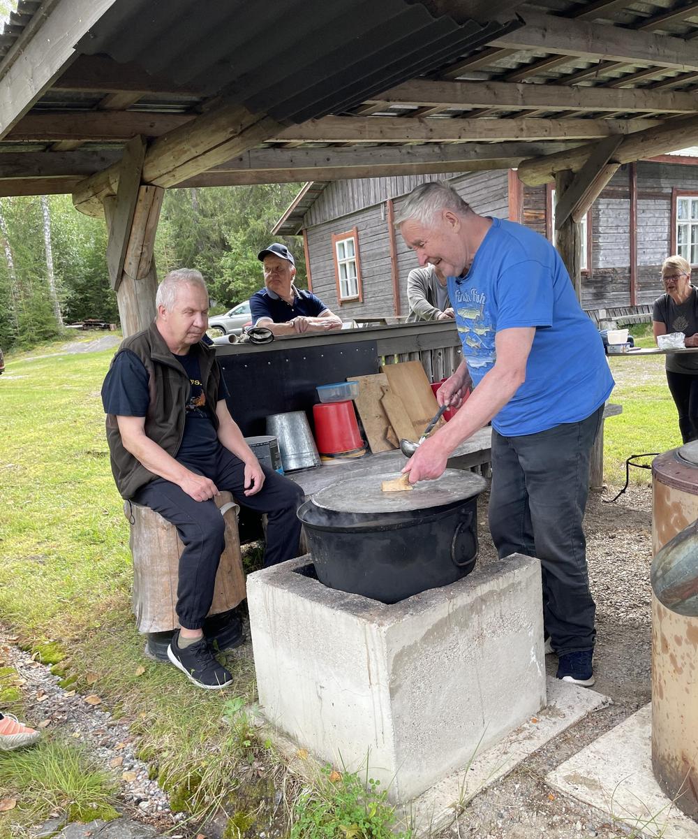 Enonkosken perinteiset Kalamarkkinat 1.7.2023 Enonkosken Eläkeläiset ry oli mukana Kalanpaistolla, siinä muikkua tirisi pannulla 70 kiloa ja ihmisiä oli jonoksi asti, vaikka kahdella pannulla paisteltiin iloisissa tunnelmissa. Meillä vielä talkooporukka riittää osa tuli jopa Savonlinnasta asti talkoisiin. Sen on kova urakka kuumien pannujen äärellä, siksi oli vaihtomiehistöäkin. Teijo vahvana miehenä "nakotti nurkassa" alusta loppuun asti. Hauskaa meillä kaikilla oli!