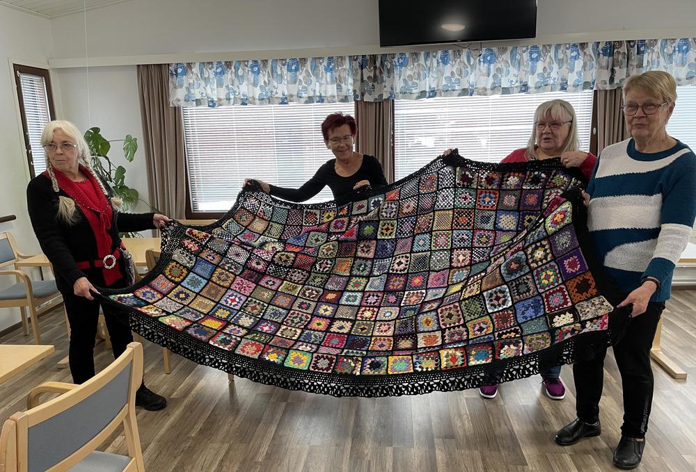 Ahkerien käsityökerholaisten taidon näyte, siihen on mennyt aikaa ja useita tuntea. Upeaa! Kerhossa Hilkka tanssitti lapaduu...lapaduu ja kädet olikin jo nilkoissa asti, siinä vanhakin jo nuortuu! Pipsalla oli kivat muistipelikortit tehty meidän tapahtumista- saatiin vähän muistin virkistystä ja palloakin heiteltiin se oli hyvää tasapainoa ja koordinaattikykyä vilkastuttavaa ja hauskaa meillä oli. Kerhopäivänä 30.10 Niin saatin uusi kerholainenkin Tervetuloa Aila!