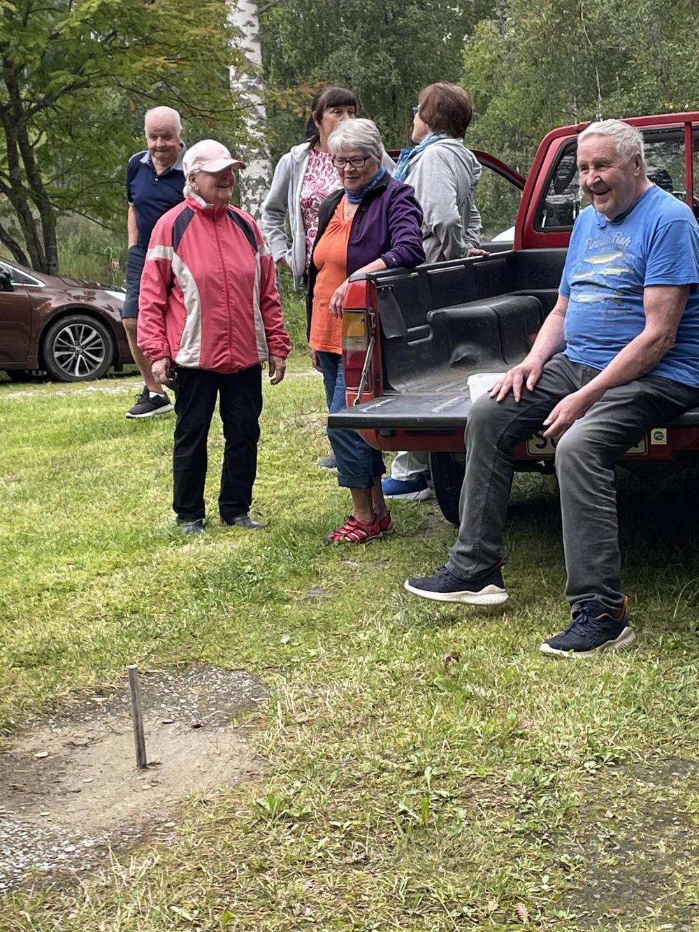 26.8. Ma Perinteinen ulkoilupäivä Matkonlahdessa. Ensin ongintaa ja tulostakin tuli, Ruokana hirvikeittoa ja jälkkäriksi kahvit ja Ailan paistamaa marjapiirakkaa. Välillä laulettiin ja Sirpa piti hauskan leikki kisan sisällä. Sitten kailkki ulos ja siellä oli monenlaisia leikkimielisiä kilpailuja kaikki otti ihanasti osaa. Arpoja myytiin mukavasti ja lopuksi oli palkintojen jako ja arvonta. Sää oli hyvä ja kaikilla oli iloinen mieli ja oli kiva tavata taas tuttuja.