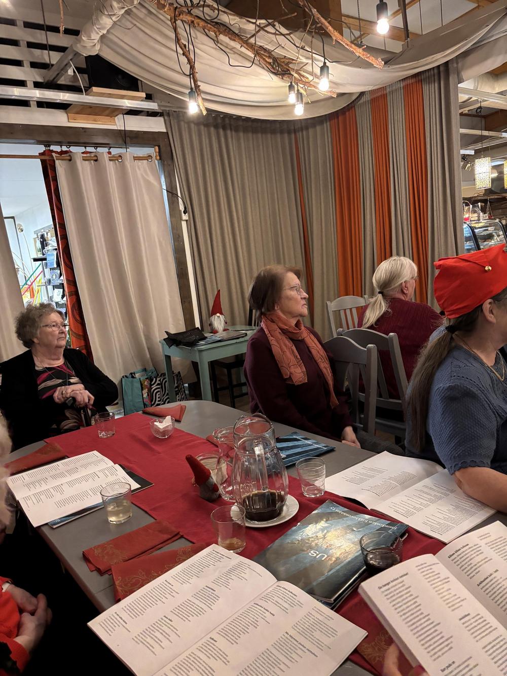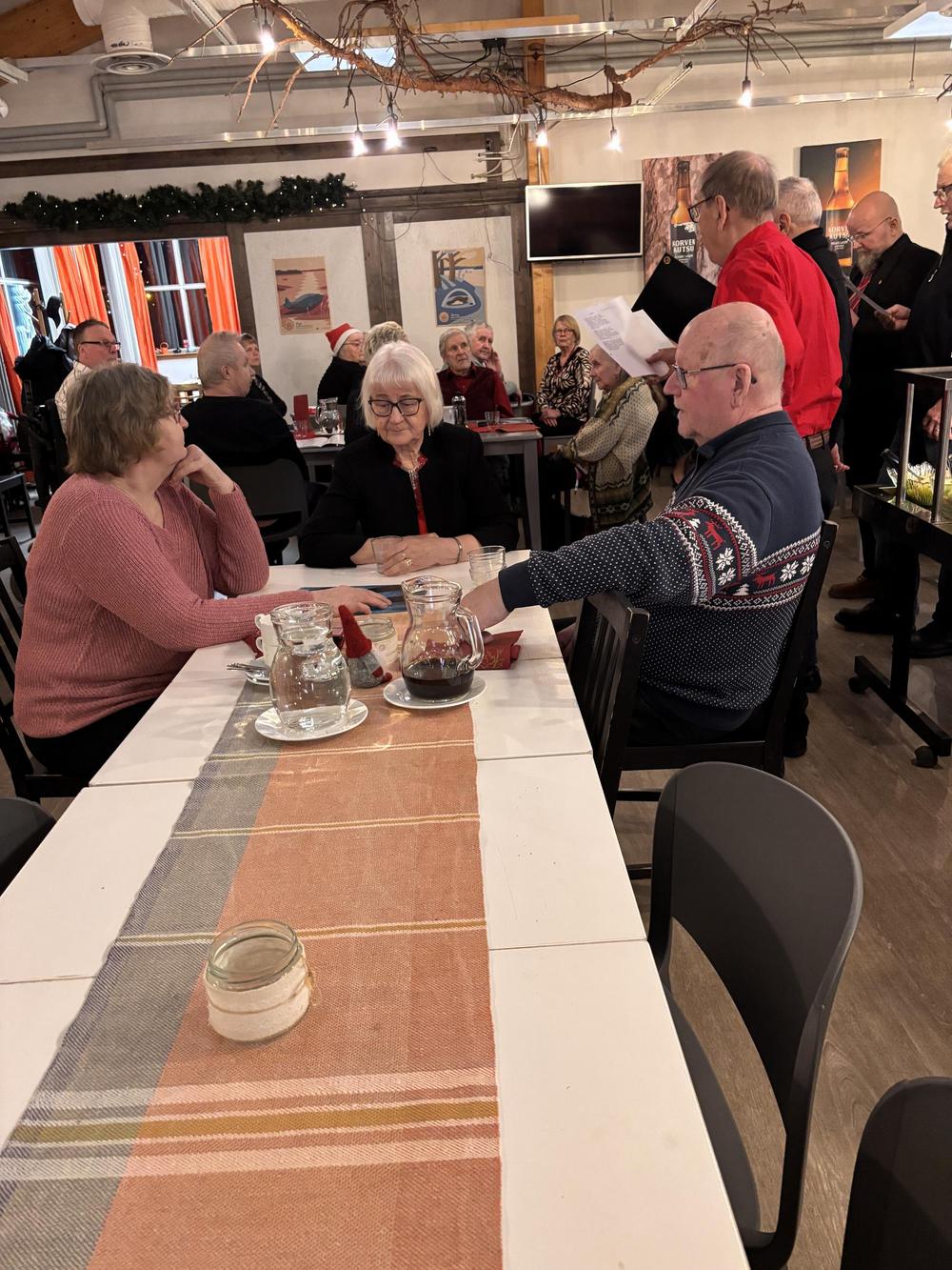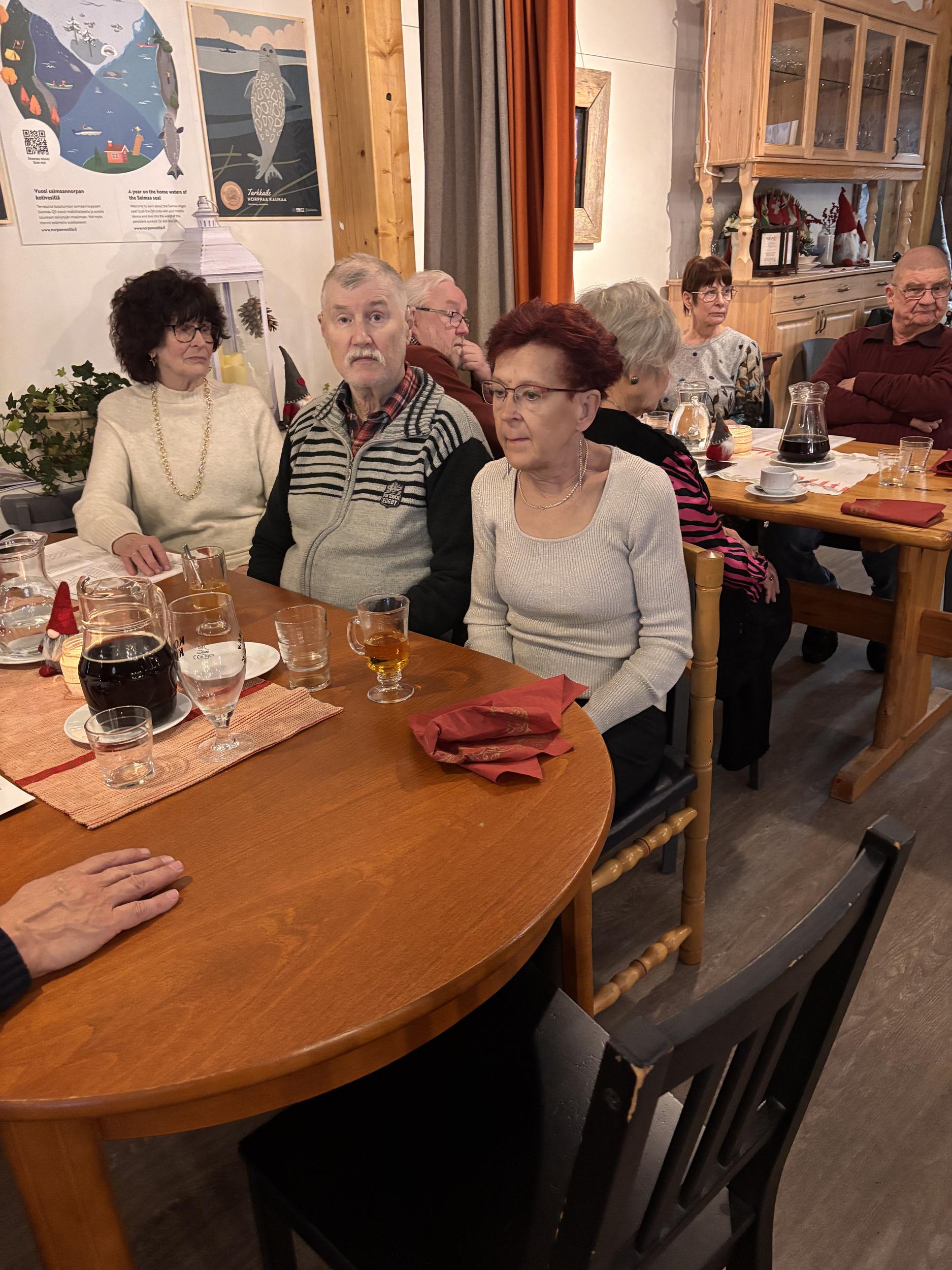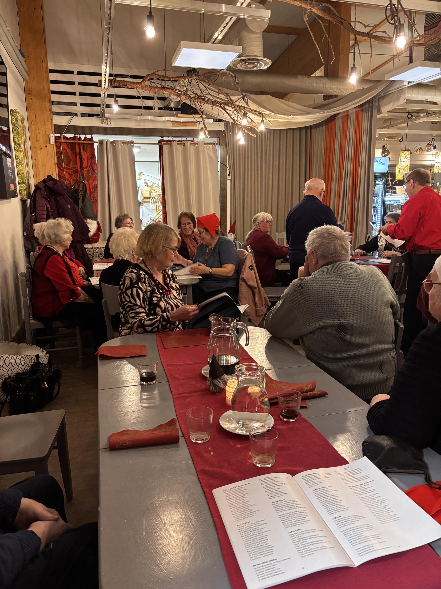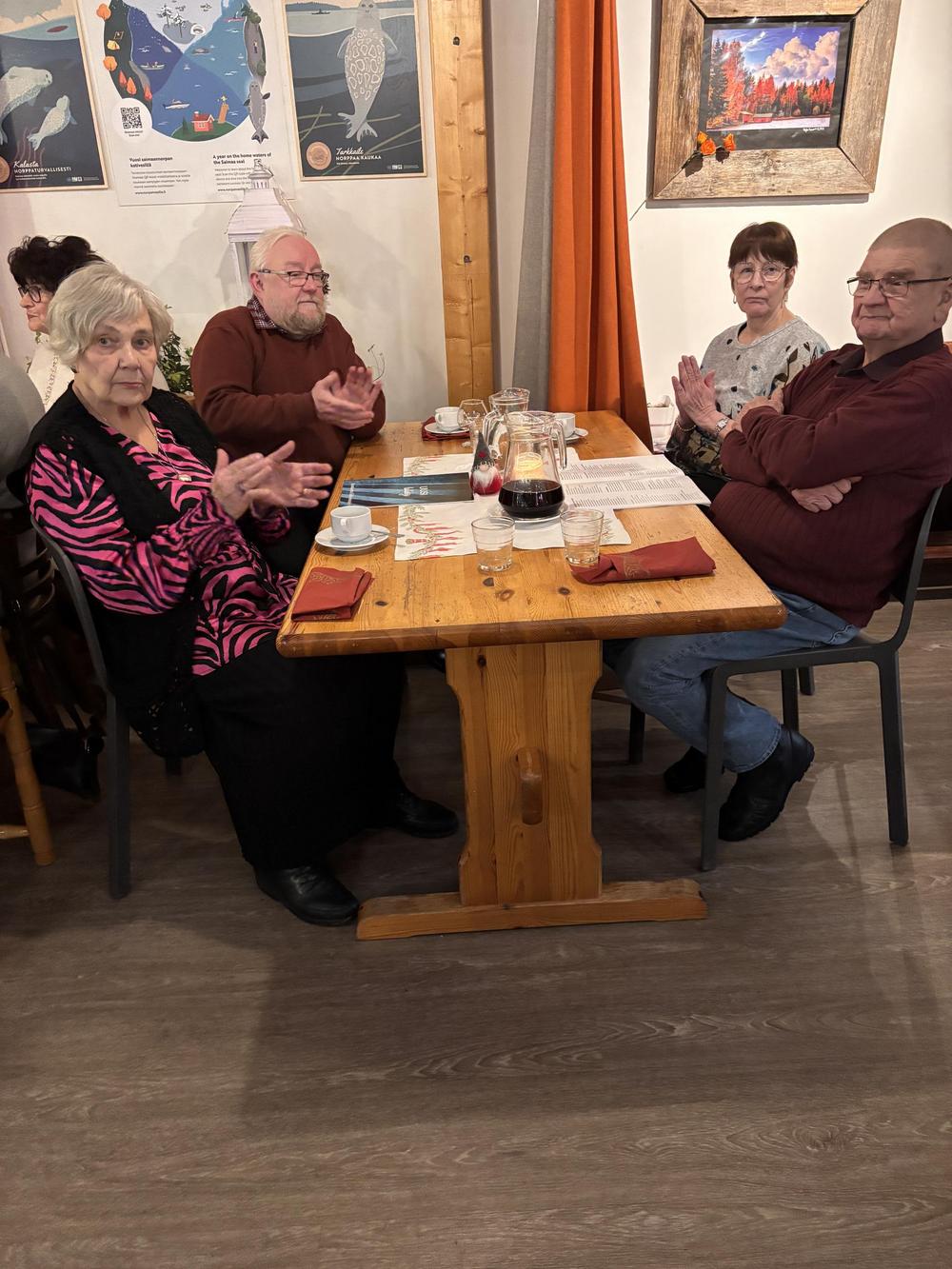 Vuoden 2025 pikkujoulua vietimme Maitolaiturilla, ruoka oli hyvää ja laulelimme joululauluja, joulupukkikin kävi kurkkaamassa ollanko sitä oltu kilttejä.